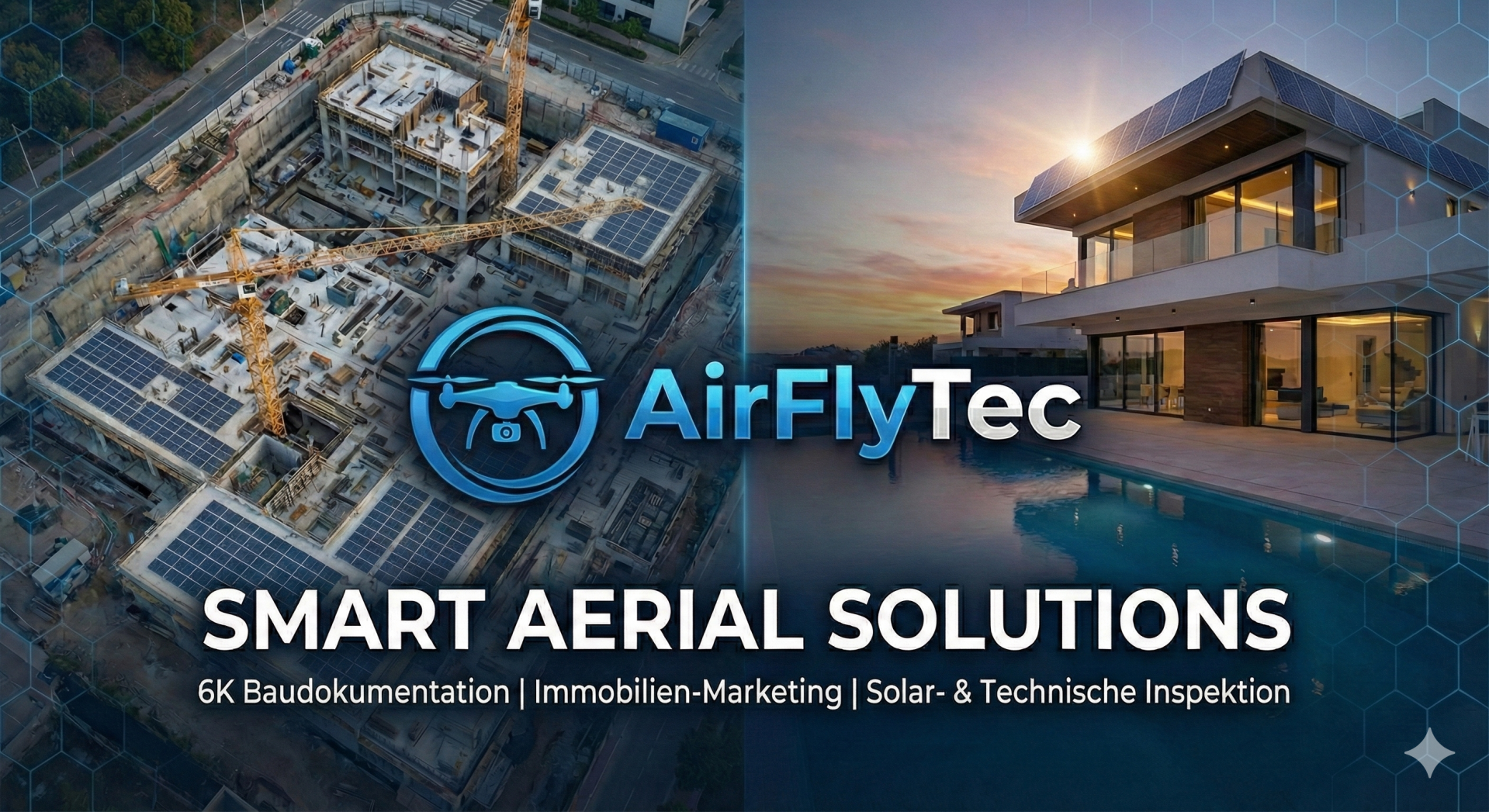 AirFlyTec – Ihr Partner für überregionale Bau-Dokumentation, Solar-Inspektion und Immobilien-Marketing. Wir verbinden hochauflösende 6K-Drohnendatenerfassung mit effizienten digitalen Workflows über unsere exklusive Kunden-Lounge. Setzen Sie auf zertifizierte Präzision und maximale Zeitersparnis – bundesweit für Sie im Einsatz